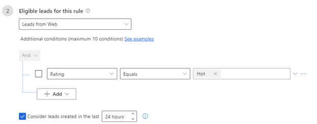 In the Select eligible leads for this rule section, you can specify the following options: