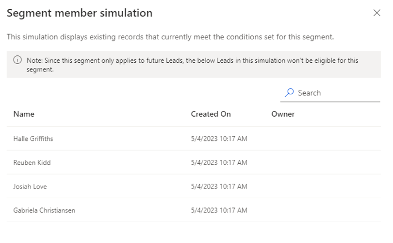 Now, a list of records displays that satisfy the conditions that you've defined for the segment in the application.