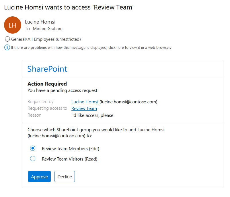 The following screenshot shows the same Actionable message if it's rendered incorrectly.