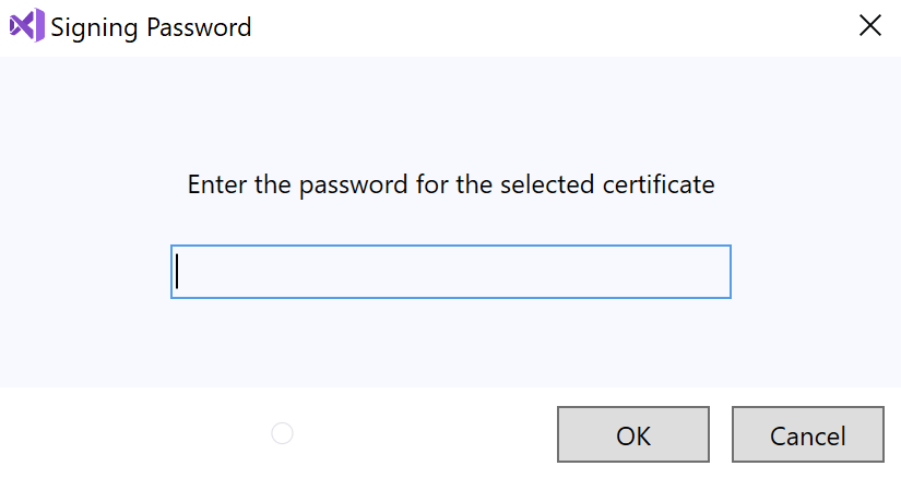 Next, a dialog is presented to enter the password for the signing certificate. Enter the password and click OK: