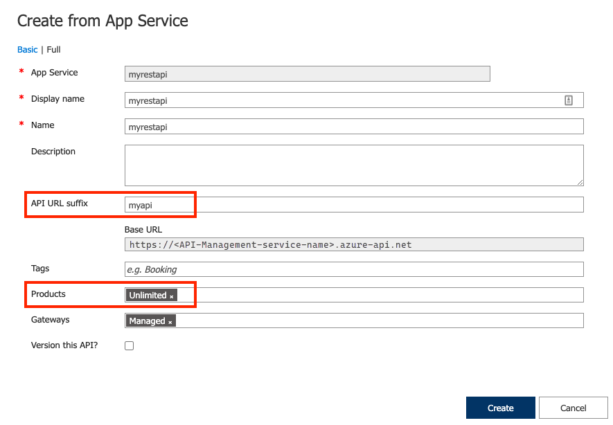 - Import a web app, which is hosted in Azure App Service, as an API