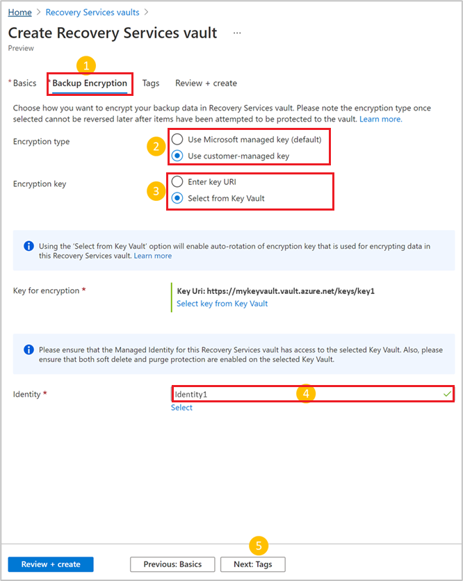 - Assigned permissions to your Recovery Services vault (or the user-assigned managed identity) to access encryption keys from your key vault.