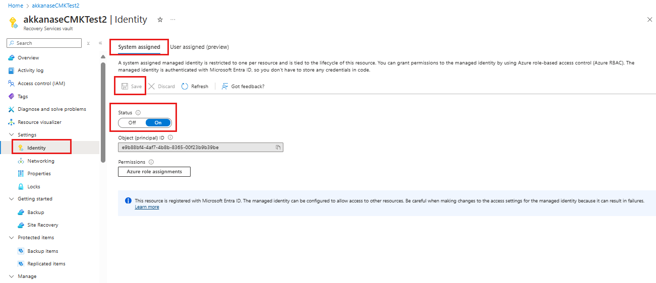 Go to your Recovery Services vault > Identity.
