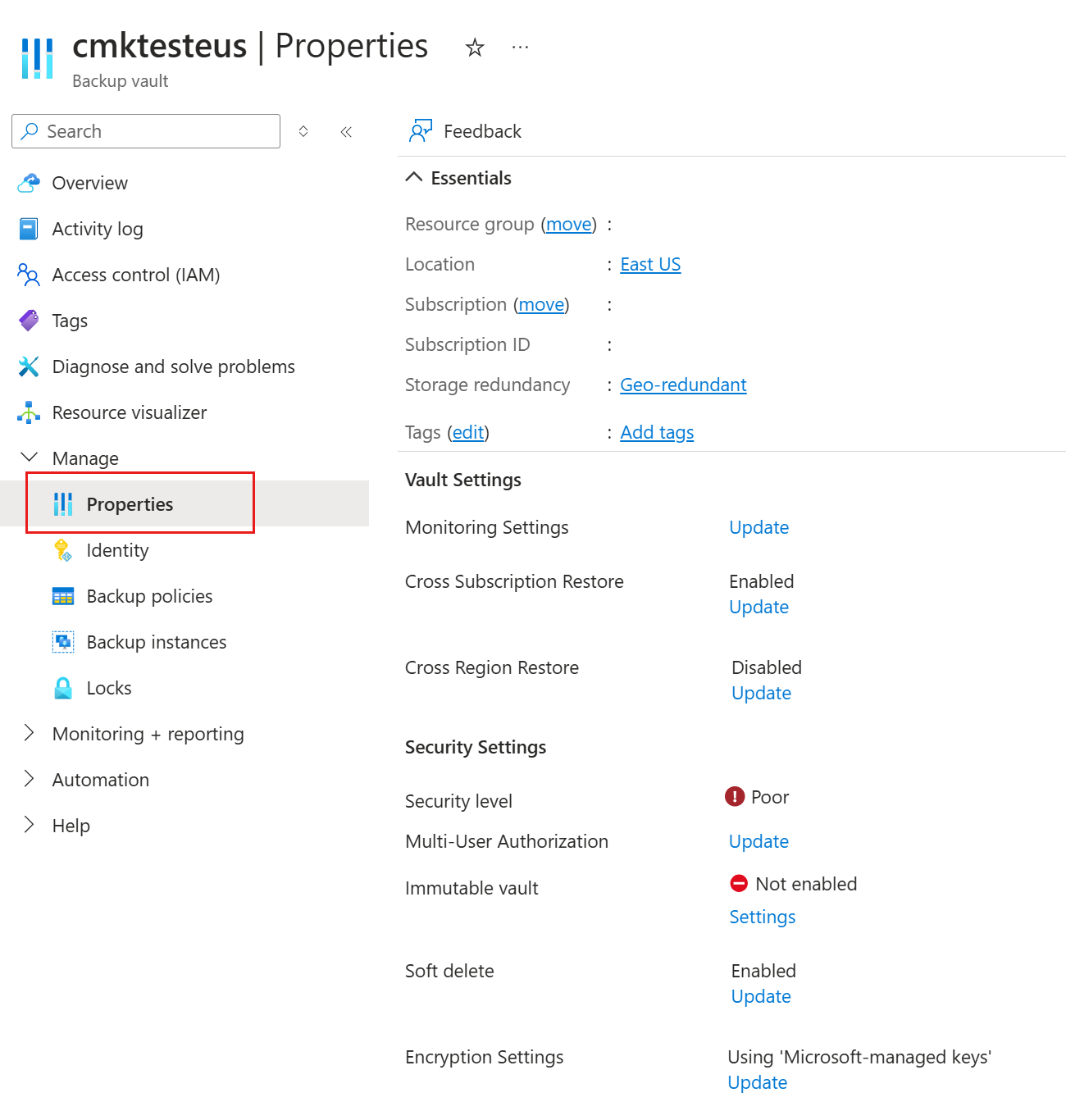 Go to your Recovery Services vault > Properties.