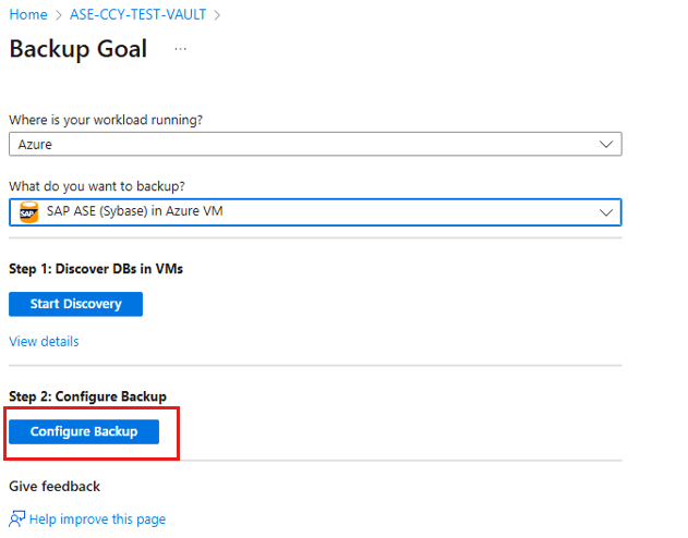 This article describes how to configure backup for SAP Adaptive Server Enterprise (ASE) (Sybase) databases (running on Azure Virtual Machines) using Azure portal.