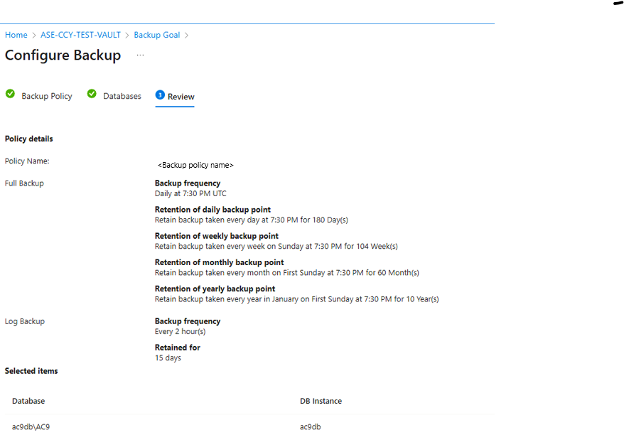 Under Backup Policy, select Create a new policy for the databases.