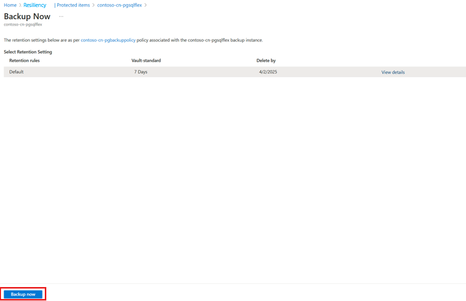 On the Backup Now pane, validate Retention rules as per the associated Backup policy, and then select Backup now.