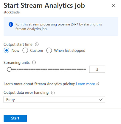 - Streaming units: Streaming units (SUs) represent the amount of compute and memory assigned to the job while it's running. If you're not sure how many SUs to choose, we recommend that you start with three and adjust as needed.