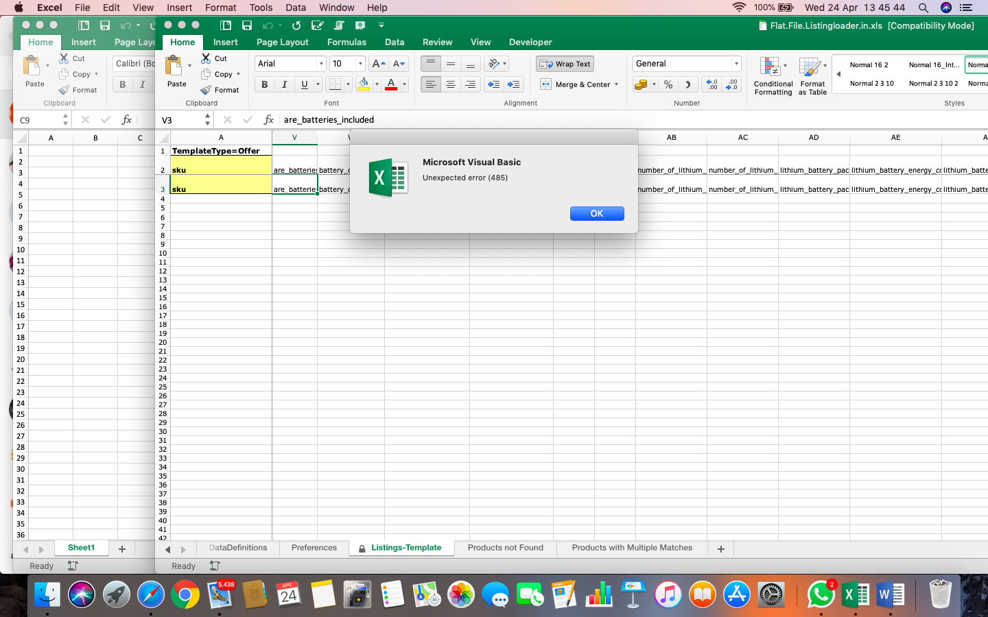 It is usually happening when your macros code refers to something that does not exist or no longer exists. Since you are running it on MAC the latest Version of office 2016 0n Mac is 16.16.9 (19041201), please update after re-open Excel file. Release notes for Office 2016 for Mac