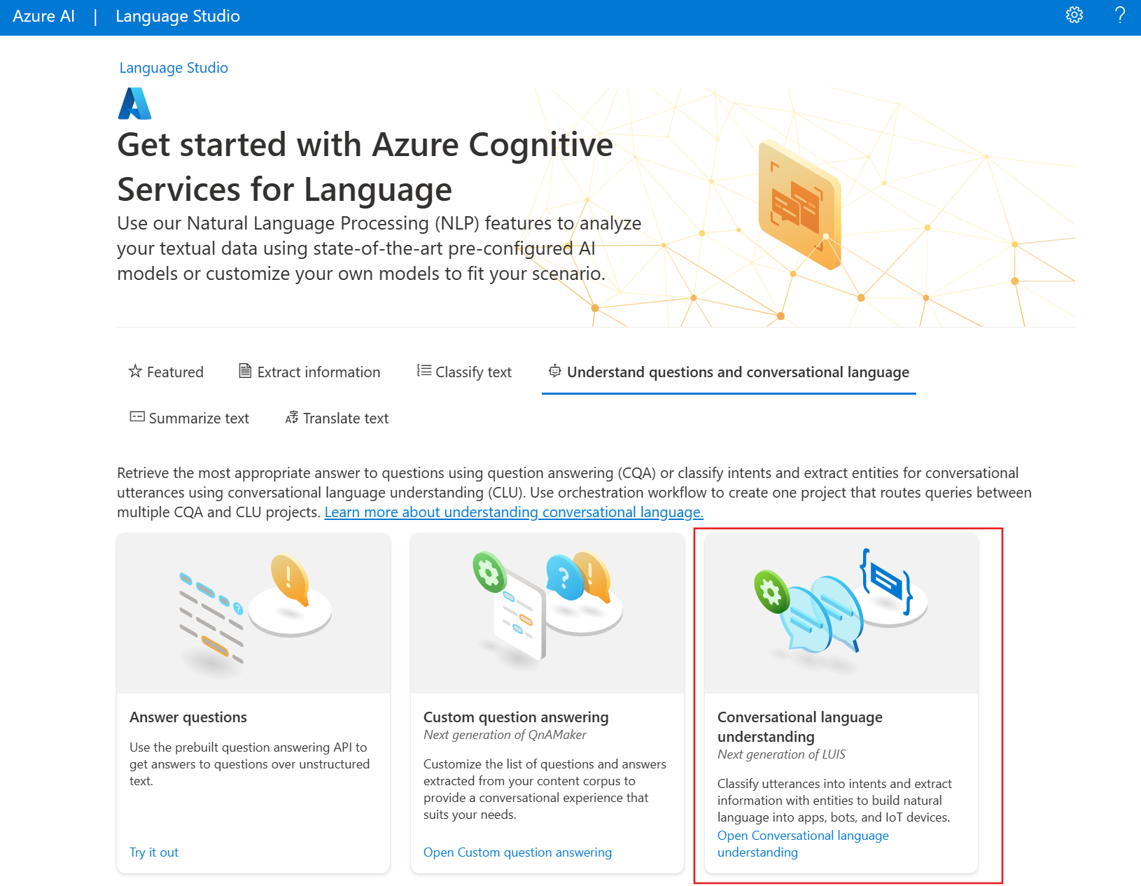 First, you'll need to create your Azure Language resource in the Azure portal. Then: