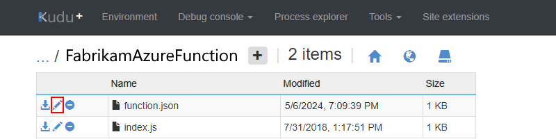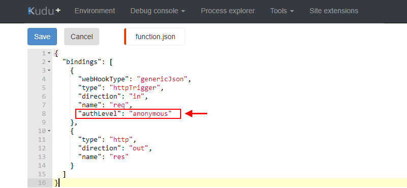 Abra el archivo function.json para editarlo.