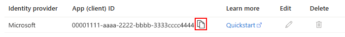 Continúe con la sección siguiente para agregar un proveedor de identidades a la aplicación de funciones mediante el identificador de aplicación copiado.