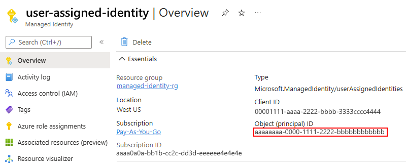 Busque el identificador de objeto de la identidad administrada.