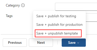 En la lista Guardar , seleccione Guardar y cancelar la publicación de la plantilla.