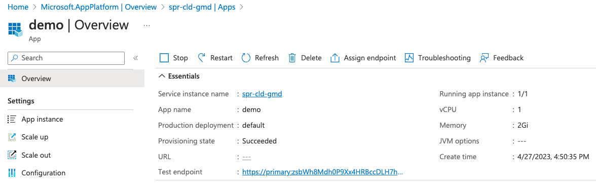 mvn clean package -DskipTestsCree la aplicación en la instancia de Azure Spring Apps: