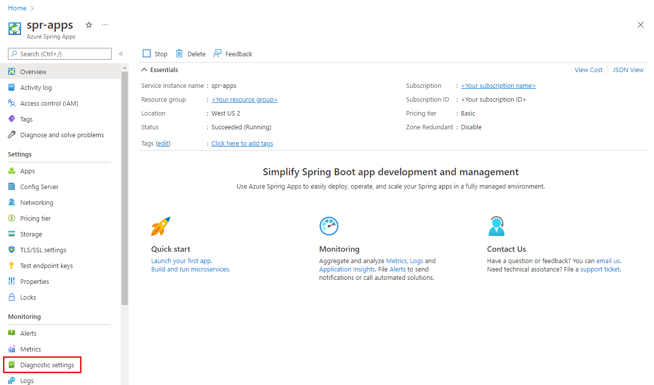 En Azure Portal, vaya a la sección Configuración de diagnóstico en Supervisión.