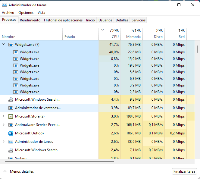 No sé para qué sirve Widgets.exe pero desde la última builds instalada de Windows 11 me consume demasiados recursos. favor su ayuda.