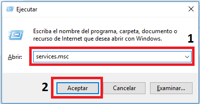 1. Presiona las teclas Windows + R para abrir el programa ejecutar. Escribe services.msc y haz clic en el botón aceptar para abrir los Servicios de Windows.