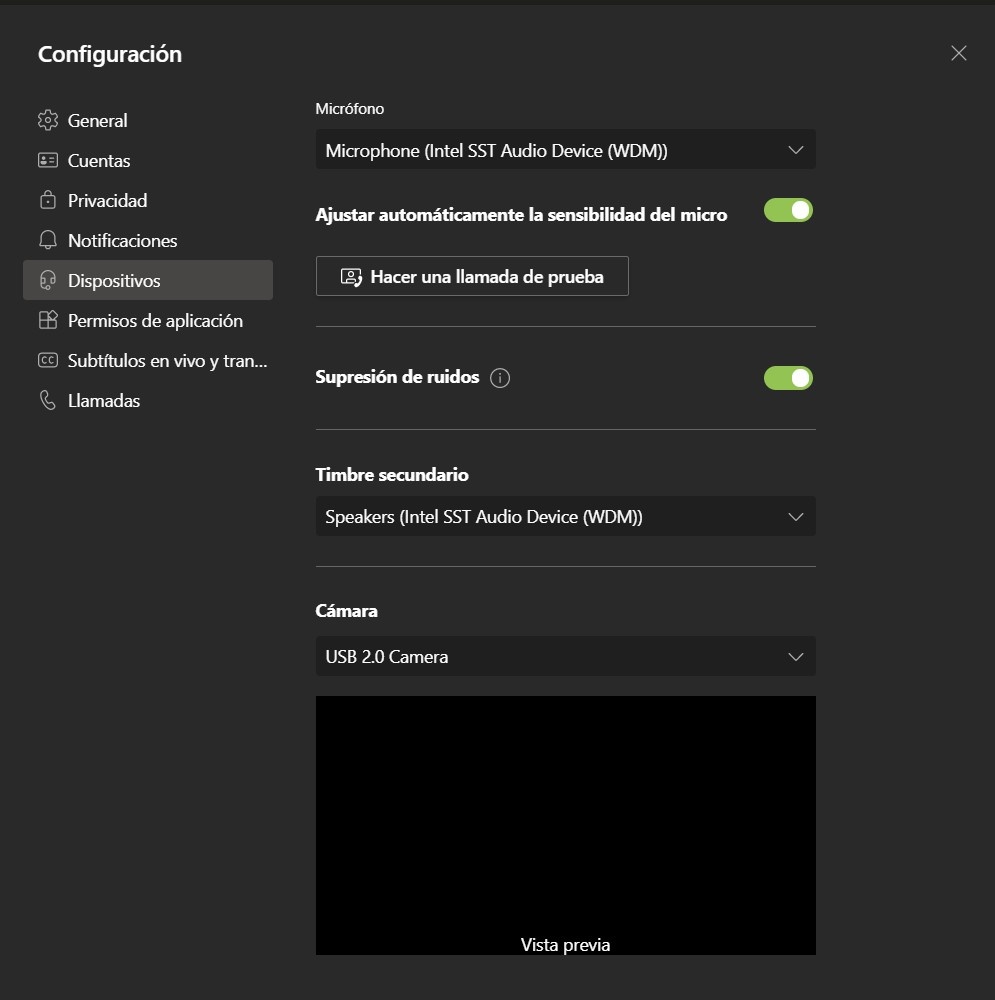Luego revise si activando su cámara el programa responde de manera correcta.