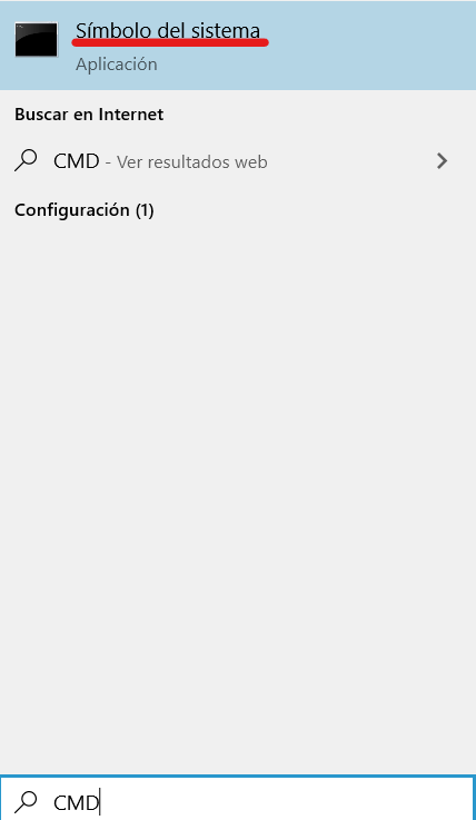 - En la barra de búsqueda de Windows, escriba "CMD" (sin comillas).
