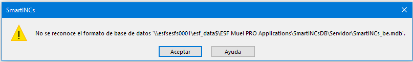 "No se reconoce el formato de base de datos..."