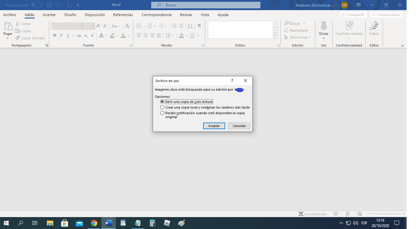 Estaba editando imágenes en Word y quería guardar el archivo, se congela y no responde, lo cierro para intentar recuperar el archivo, me sale que no tengo permisos, cuando estoy en una cuenta de administrador. ¿Qué puedo hacer?