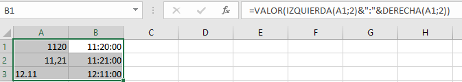 … luego colocas el código que fracciona el número, seguido de la construcción de la hora.