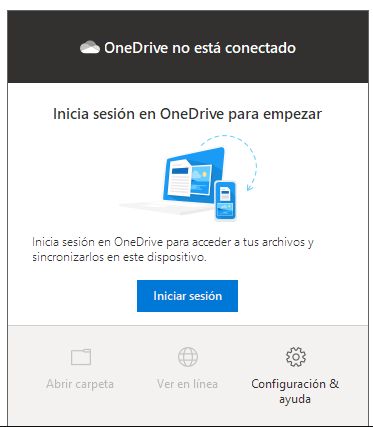 Desde hace un par de días, al iniciar Win10, no se inicia sesión de OneDrive quedando el icono así: