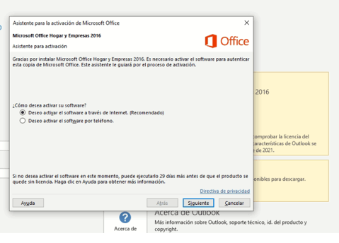 Quisiera solicitar su apoyo, estoy procediendo activar licencias en los equipos de mi empresa con el office 2016 hogar y empresas pero con las licencias no me permite, anteriormente tenia el office 2016 profesional plus.