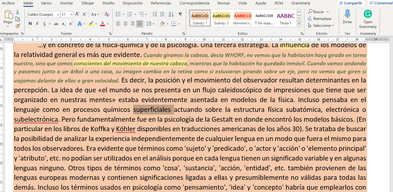Adjunto una imagen de cómo se me queda al querer aplicar el estilo "Subray. 1" a la palabra "superficiales":