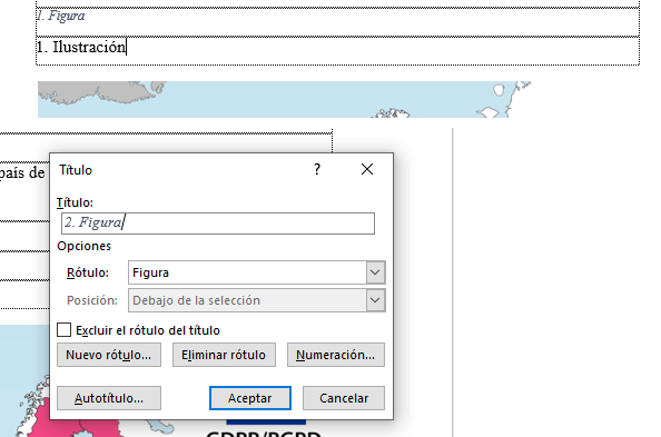 Cuando añado un título de una Figura o tabla, me aparece como1. Figura, pero quiero cambiarlo a Figura 1. ¿Cómo lo Cambio?
