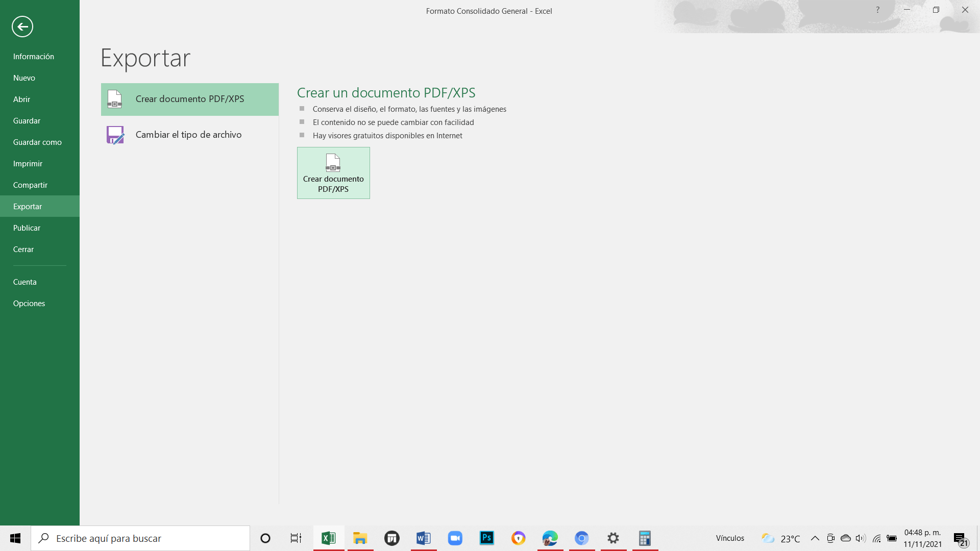 Abre el archivo de Excel y habilita la edición en caso que te aparezca el mensaje en la parte superior. Luego dale clic en "Archivo" > Guardar como, dale clic al cuadro desplegable y selecciona la opción "PDF" como aparece en la imagen. Con eso deberías estar listo. Saludos...