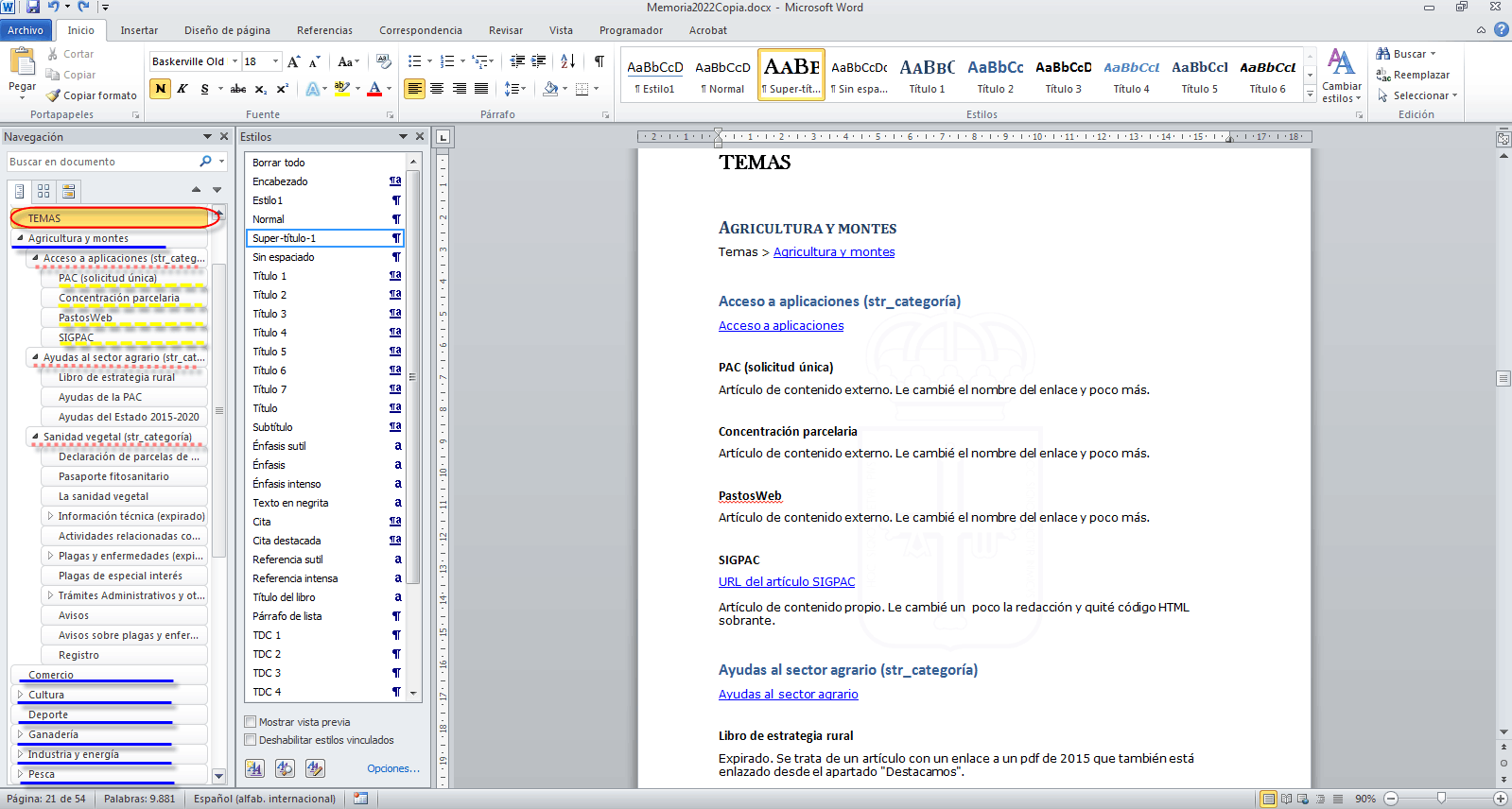 Tengo un documento de word con muchos títulos, los fui creando a medida que iba creciendo el documento.