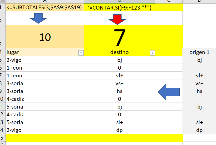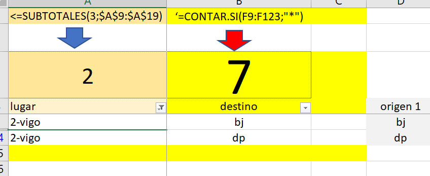 si filtro el rango la funcion subtotales me cuenta los selecionados ... pero la de contar sigue calculando las
