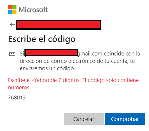 No puedo desbloquear mi almacén personal de OneDrive debido a que me pide un código de 7 dígitos y al correo me llega uno de 6 digitos.