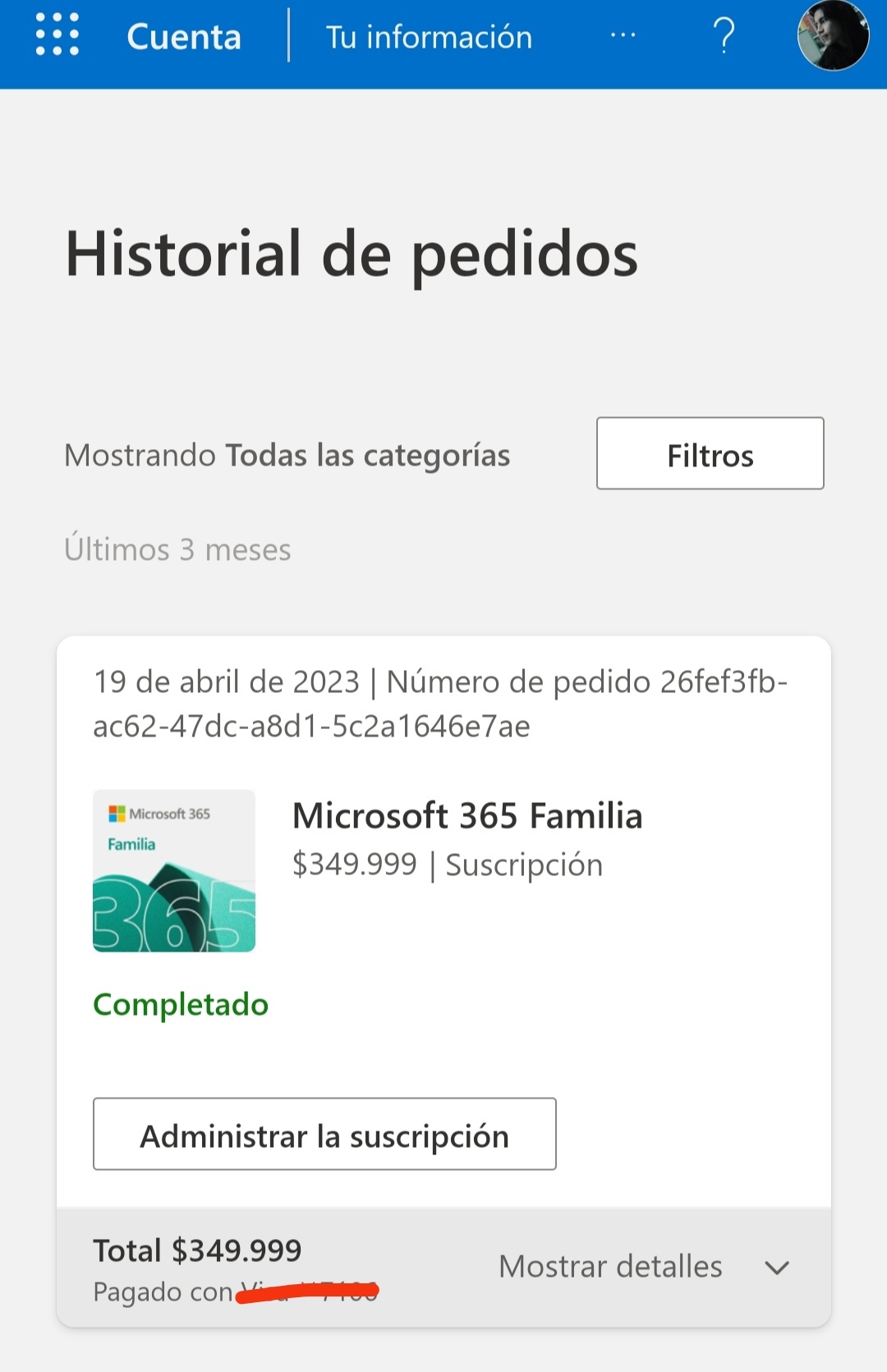 Microsoft 365 y Office | Suscripción, cuenta y facturación | Para la casa | Windows