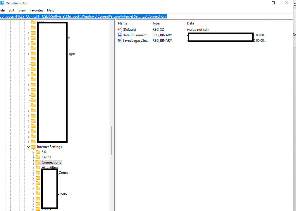 HKEY_CURRENT_USER\SOFTWARE\Microsoft\Windows\CurrentVersion\Internet Settings\Connections.