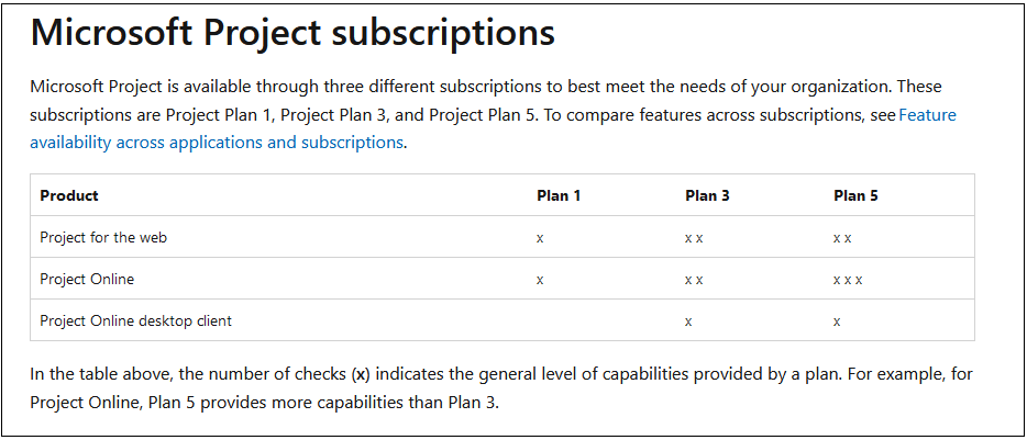 Según su descripción, la aplicación cliente de escritorio de Microsoft Project Online está disponible a través de dos suscripciones: Project Plan 3 y Project Plan 5.