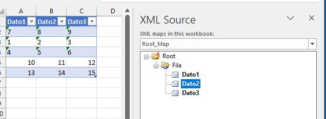 Saludos. Necesito ayuda. Uso windows 10 y Office 365 para uso doméstico. Tengo una tabla de 3 columnas con encabezados en una hoja de excel y en el mismo directorio donde está la hoja tengo un archivo Table_Map.XML con los mismos nombres de los encabezados.