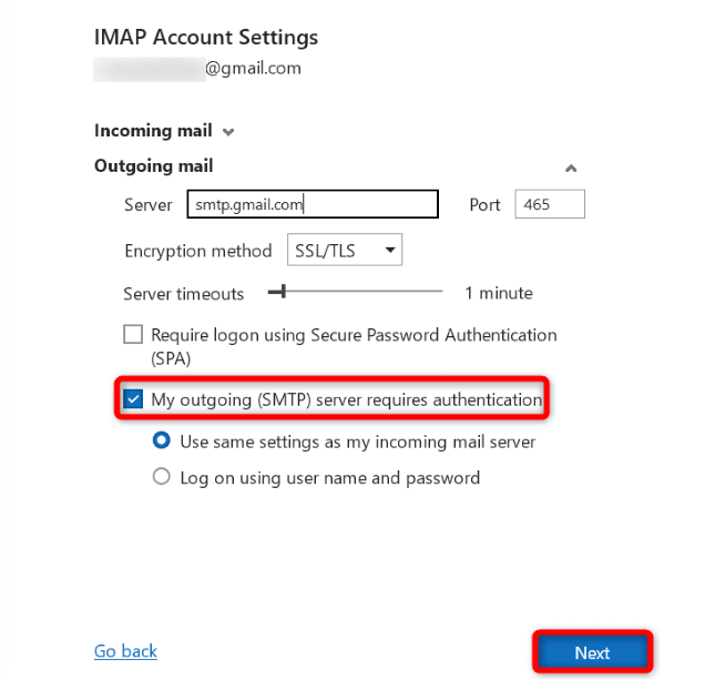 Compruebe de nuevo la configuración del servidor de cuentas y vuelva a autenticarlo.