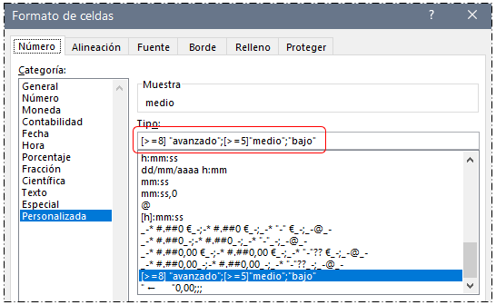 Para hacer este ejemplo he dado Formato de celda personalizada al rango de celdas [A2:A10] con el formato siguiente: