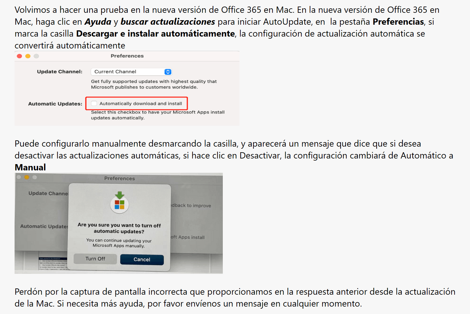 Para su referencia: Deshabilitar la actualización automática de MS Office por completo en MacOS - Microsoft Community