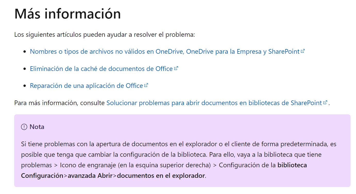 Solucionar problemas al abrir documentos en bibliotecas de SharePoint - Soporte técnico de Microsoft