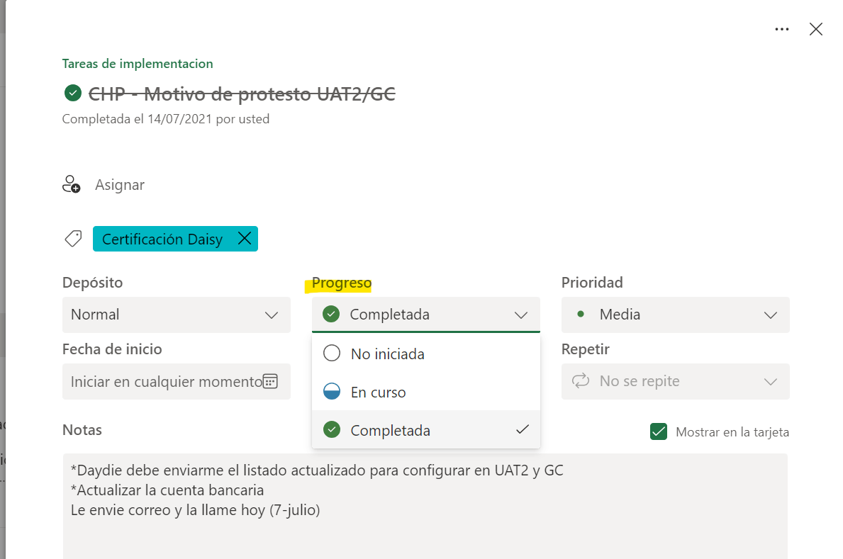 Sin embargo, como solución alternativa: si necesita valores adicionales para marcar el progreso, deberá agregar una lista de verificación a una tarea.