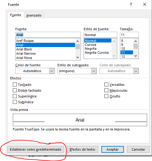 Como puedo hacer para cambiar la fuente predeterminada en word? Es decir, quiero que cada vez que abra word este seleccionada la fuente arial pero no se como hacerlo