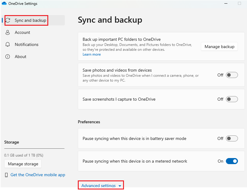 - Haga clic en Sincronizar y hacer copia de seguridad