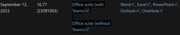 Para referencia: Historial de actualizaciones de Office para Mac - Notas de la versión de Office | Microsoft Learn