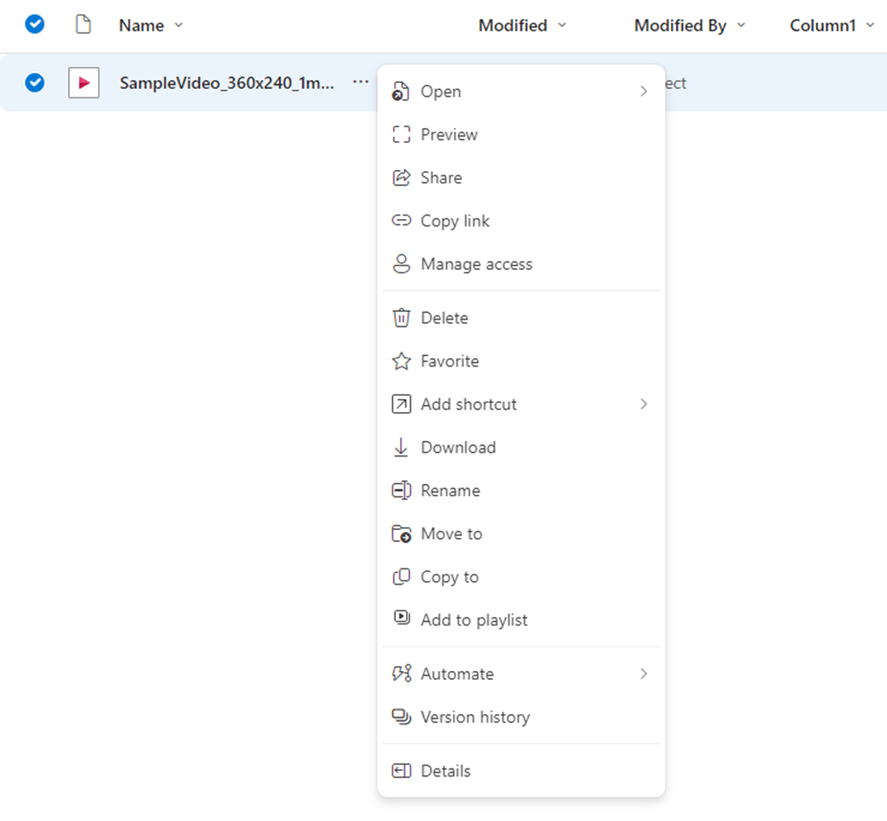 ¿El problema ocurre cuando hace clic en ... >Vista previa como la siguiente en OneDrive para la Empresa?