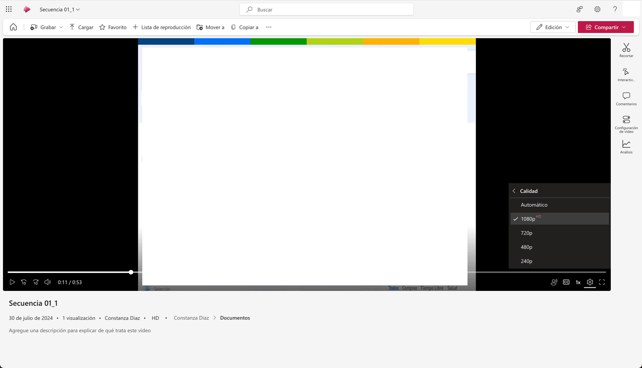 Si es conveniente, ¿podría cargar algunas capturas de pantalla relacionadas para nuestra referencia y poder confirmar el síntoma del problema en su entorno? ¿El problema solo ocurre con un video específico?