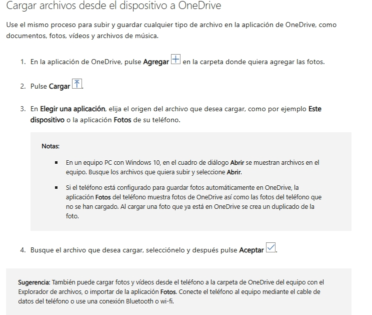 Hola, Pau gr ¡Bienvenido a la comunidad de Microsoft!Según su descripción, ha conectado su teléfono Samsung a su computadora, pero no está seguro de cómo transferir fotos a diferentes carpetas en OneDrive. Entiendo completamente los problemas que esto puede causarte, así que no te preocupes, ¡estoy aquí para ayudarte!Para solucionar el problema, puede intentar seguir estos pasos:1. Conecte el dispositivo: asegúrese de que su teléfono Samsung esté conectado a la computadora a través de un cable USB y que el teléfono esté desbloqueado.2. Abra el Explorador de archivos: Abra "Explorador de archivos" en su computadora (Windows + E).3. Encuentre su dispositivo: Localice y haga clic en su teléfono Samsung en la barra lateral izquierda, que generalmente aparece debajo de "Esta PC" o "Dispositivos y unidades".4. Acceda a la carpeta de fotos: Navegue hasta la carpeta de fotos de su teléfono, que generalmente se encuentra en la carpeta DCIM.5. Seleccionar fotos: Seleccione las fotos que desea mover. Puede mantener presionada la tecla Ctrl mientras hace clic en cada foto para una selección múltiple o presionar Ctrl + A para seleccionar todas.6. Copiar o cortar fotos: Haz clic derecho en las fotos seleccionadas y elige "Copiar" o "Cortar".7. Abra la carpeta de OneDrive: En el Explorador de archivos, navegue hasta la carpeta de OneDrive y abra la subcarpeta donde desea almacenar las fotos.8. Pegar fotos: Haz clic con el botón derecho en un espacio vacío dentro de la carpeta de OneDrive y selecciona "Pegar".9. Sincronizar OneDrive: Una vez que las fotos se copian o se mueven a la carpeta de OneDrive, OneDrive iniciará automáticamente el proceso de sincronización para cargar las fotos en la nube.****10. Verifique el estado de sincronización de OneDrive: Puede verificar el estado de sincronización mirando el ícono de OneDrive en la bandeja del sistema para asegurarse de que todas las fotos se hayan cargado correctamente. Además, encontré un artículo que detalla cómo cargar archivos o fotos a OneDrive en un dispositivo Windows Mobile: Cargar archivos o fotos a OneDrive en dispositivos móviles de Windows - Soporte técnico de Microsoft